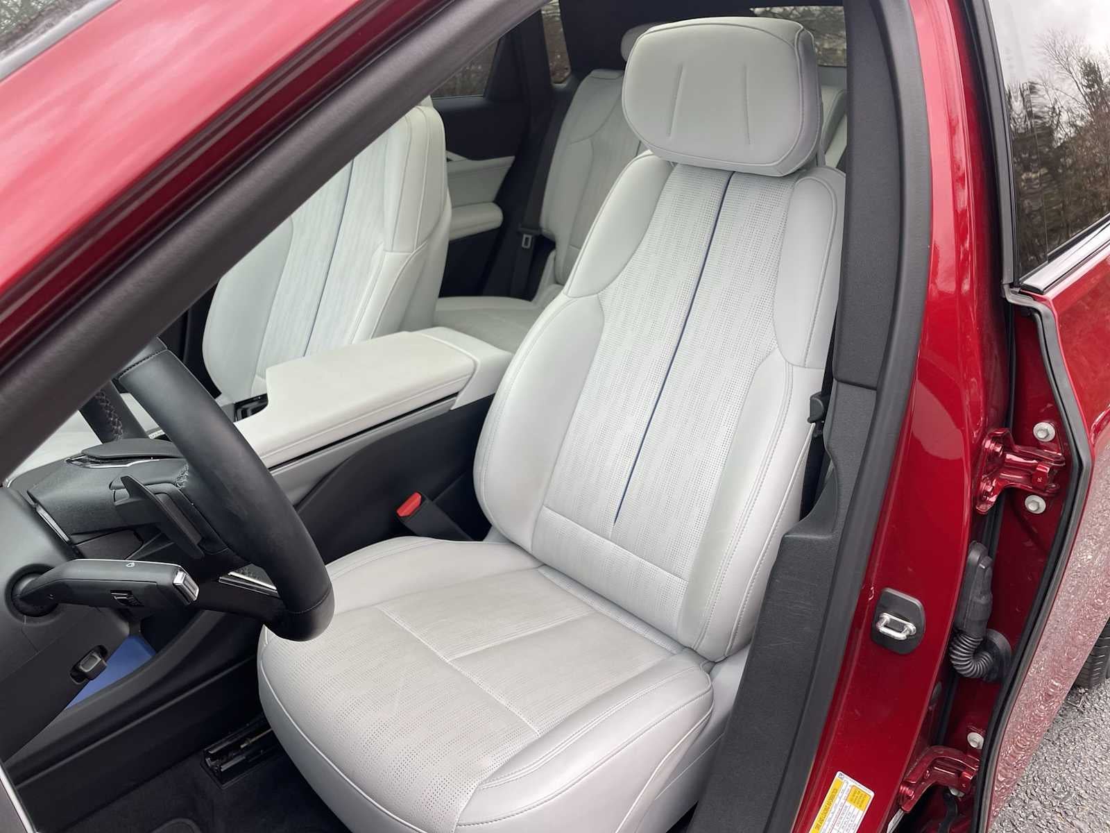 Navigation, Panoramic Roof, Power Liftgate, Heated Driver Seat, Back-Up Camera. Cadillac Luxury with Radiant Red Tintcoat exterior and Sky Cool Gray with Santorini Blue accents interior features a Electric Motor.